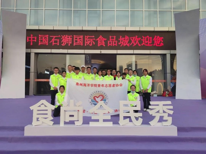 12月12日,青年志愿者协会会长罗泽和艺术团团长庄煌分别带领20名后勤保障志愿者和20名模特志愿者参与了2020年石狮市海博会“食尚全民秀”的会场服务和模特走秀。