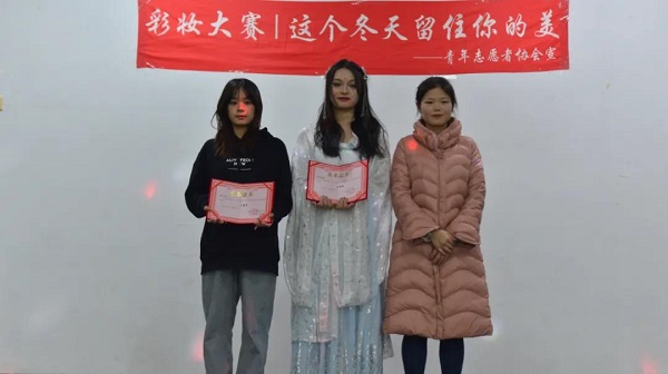 2020年12月22日晚七点,由青年志愿者协会承办的“秀风采,展自我”彩妆大赛在一号食堂二楼顺利举办。出席本次大赛的嘉宾和评委老师有:学工部苏良城部长、校团委徐雪婷副书记、航海物流学院董灿荣老师、休闲文旅学院蔡岱宏老师、家事护理学院温馨老师、中恒百瑞学院聂彬老师。
