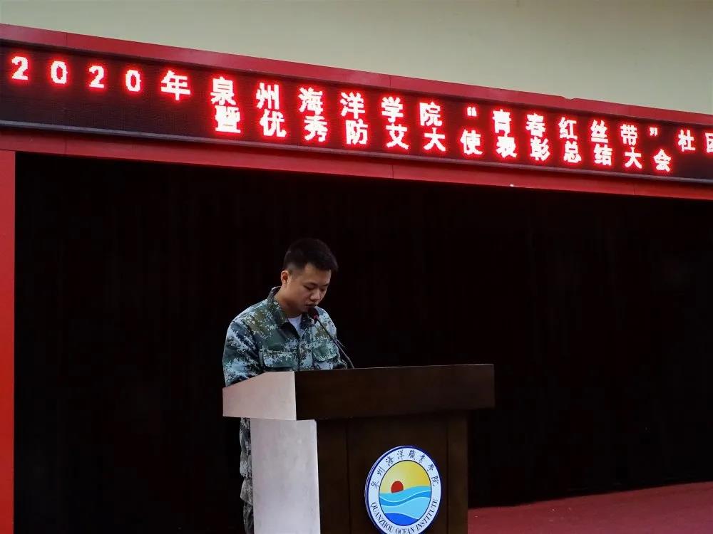 2020年12月24日10:00,泉州海洋学院“青春红丝带”社团成立暨防艾总结表彰大会在教学楼2204报告厅举行。出席本次大会的领导有祥芝镇卫生院倪孝渊书记、学生工作与发展部苏良城部长、校团委周甜书记、校团委徐雪婷副书记、祥芝卫生院蔡燕芬医生。全体20级团支书参加了此次大会。