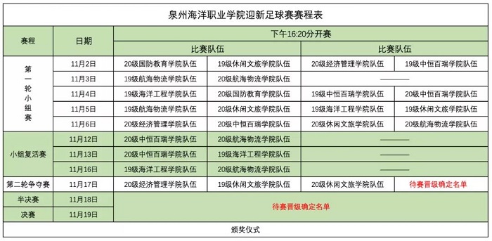 为发展校园体育运动,丰富学生的课外活动,增进各学院同学们之间的相互了解。2020年11月2日,我校足球赛正式开赛!