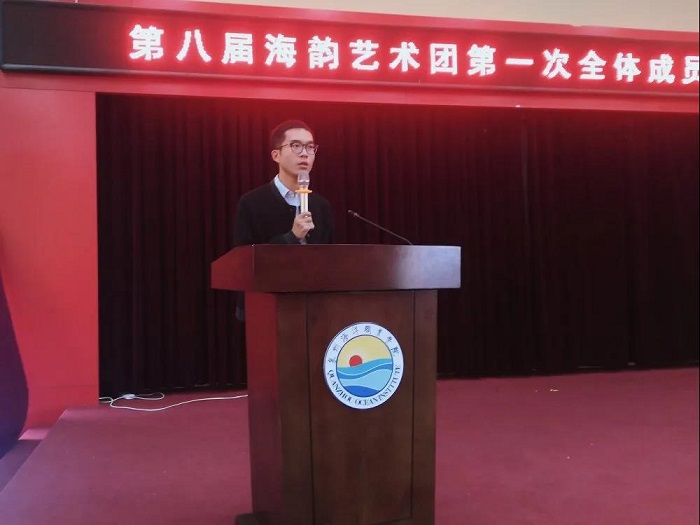 艺术团团长庄煌结合艺术团的未来发展规划,要求全体部员抓准定位,明确职责;严于律己,积极排练;立足品牌建设,勇于创新。言语中蕴含着团长对艺术团、对这个大家庭的殷切期望与真诚鼓励!