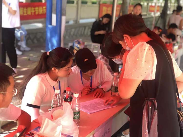 七月的骄阳似火,我校老师和学生志愿者顶着烈日,始终坚持在迎新工作第一线,为新生及家长答疑解惑,让新生感受到了校园的温馨。