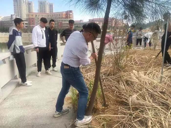 为进一步营造整洁、优美、卫生的校园环境,努力为学生创造一个舒适的活动场所,2019年12月17日12时,由柏定国校长、苏良城老师、周甜老师等人带领院校同学进行校内除草活动。