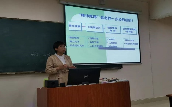 方秀莲老师作为我校学生心理测评工作的牵头人,首先为与会人员反馈19级新生心理测试结果,要求各二级学院高度重视,并协助心理咨询中心开展进一步的筛查工作。其次给各位老师讲解精神障碍的形成过程,对不同等级的症状指出相应的处理办法。同时公布心理中心咨询师的排班表,希望大家在遇到心理问题时积极寻求心理帮助。最后方老师对学生心理测评结果进行总结,指出部分同学存在某些倾向性心理问题,班主任要把握学生心理动态,引导学生正确认识心理咨询工作,学生可根据咨询中心值班表前来咨询,心理咨询老师将始终严格遵守保守来访者个人隐私的职业操守,保护学生心理信息安全。