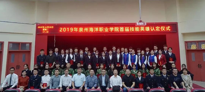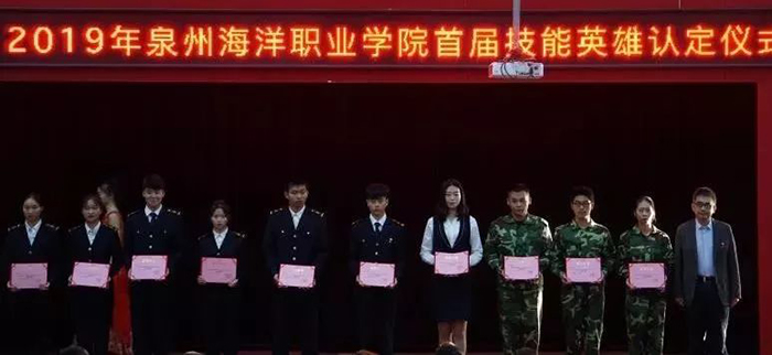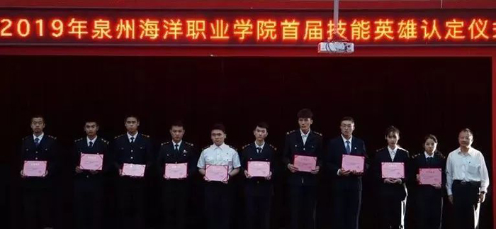 大会第一项议程,由苏良城部长宣读《泉州海洋职业学院“技能英雄谱”实施方案》,让我们明白技能英雄谱设立的初衷及相关评选规则。第二项议程,由梁松刚书记宣读《泉州海洋职业学院首批技能英雄名单》,登榜同学在各个领域的突出成绩让现场同学备受鼓舞。
