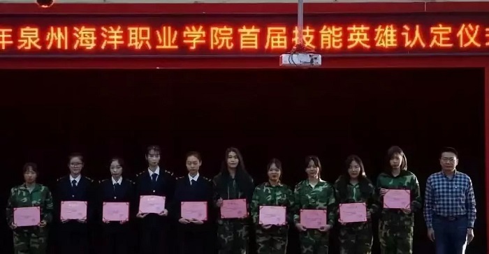 大会第一项议程,由苏良城部长宣读《泉州海洋职业学院“技能英雄谱”实施方案》,让我们明白技能英雄谱设立的初衷及相关评选规则。第二项议程,由梁松刚书记宣读《泉州海洋职业学院首批技能英雄名单》,登榜同学在各个领域的突出成绩让现场同学备受鼓舞。