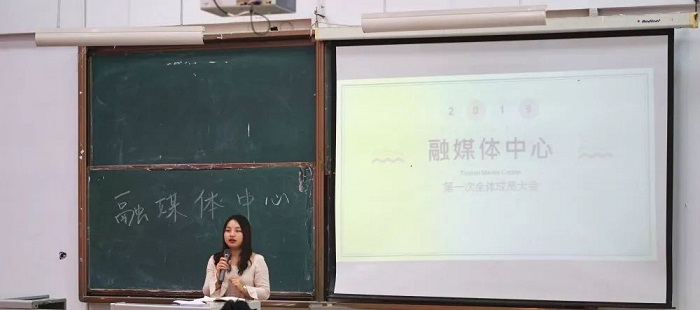大会邀请了团委老师徐雪婷,融媒体前任总监吴炳煌学长、融媒体前副总监姜萍学姐和钟炎周学长,以及融媒体中心各部门负责人和干事, 大会由融媒体中心播音部干事李易明同学主持。
