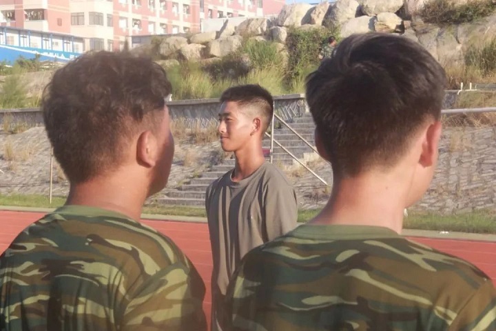 9月10日,林小城书记前往操场慰问新生,鼓励学生坚持训练,保持良好的作风。