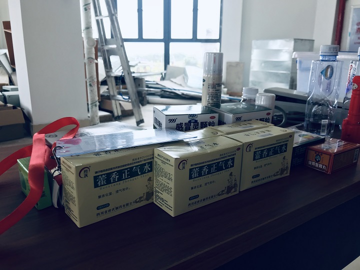 如果你们有些许的不适也不用担心,在迎新处有着“藿香正气水”、“999感冒灵”等药品,有需要的同学可以去迎新处领取。