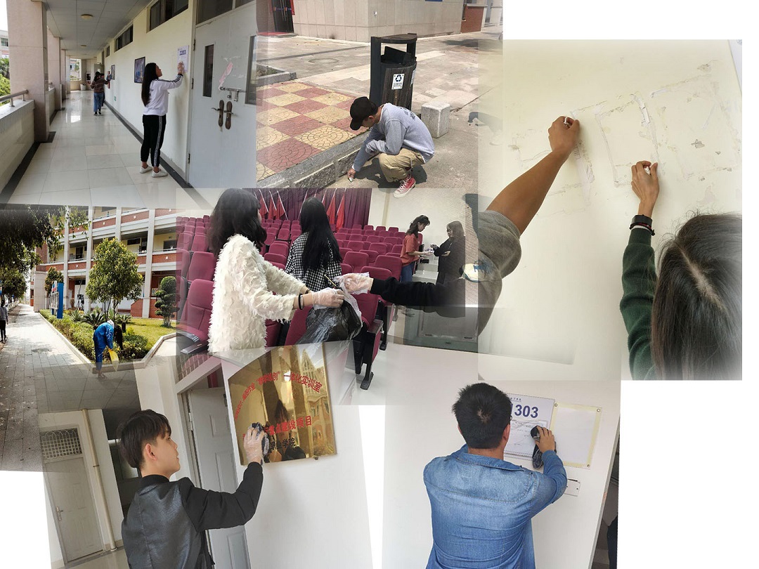 活动在一张合影中拉开了帷幕。各部长在欢声笑语中将自己的部员带到相应的位置。文艺部、社团部负责食堂门口至校门口之间的校道;体育部负责食堂门口至育航号之间的校道;学习部、生活部负责1、2号教学楼的课程表框清洁;礼仪部负责2204报告厅清洁。
