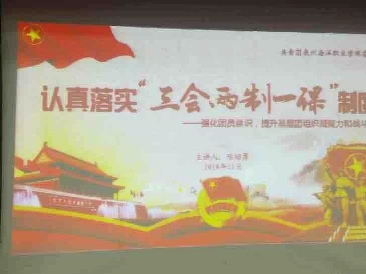 老师首先给同学们简单的介绍了三会两制一课的概念。其中他提到三会分为:支部大会、支部委员会、团小组会。两制是指:团员教育评议制度、团员年度团籍注册制度。一课指的是团课。三会两制一课是团的组织生活的基本制度。