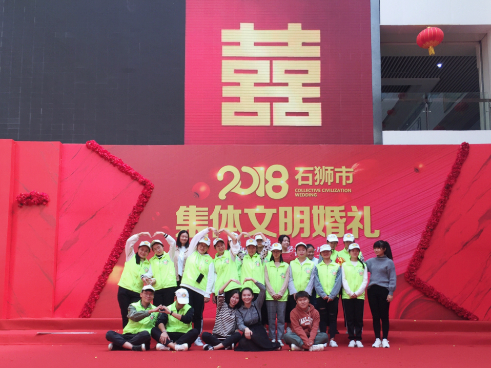 10月29日上午,在石狮国际轻纺城即将迎来一个特殊的活动——集体文明婚礼。53对新人齐聚轻纺城,这些新人均来自全市不同的工作岗位。为了回报他们为建设城市贡献的青春和力量,石狮市委特为他们举办了这场隆重的婚礼。我校青年志愿者协会受邀组织了25名志愿者前往石狮国际轻纺城协助文明婚礼活动的举办。