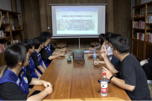曹坊镇统战委员、副镇长黄金珠,曹坊团委书记沈全坤对实践队一行的到来表示热烈欢迎。通过交流得知曹坊溪下曹河段隶属于沙溪流域长潭河支流;河道起点:下曹坑头石桥,河道终点:廖坑桥,河道全长2.8公里。在座谈会上,福建省第二届校园河长、泉州海洋职业学院学生思政教育管理科科长蔡岱宏介绍了此行开展河流保护的内容。