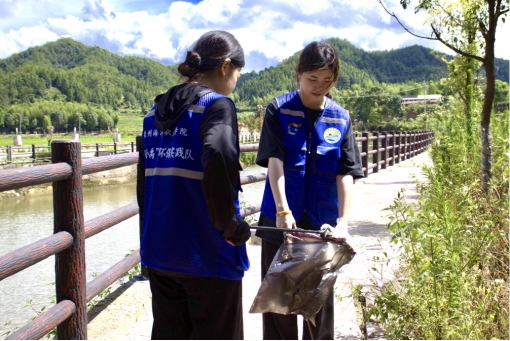 在曹坊溪下曹河段,实践队员们不惧烈日酷暑,捞垃圾、查污水、清脏乱,对沿河两岸及河道区域内垃圾进行清理,用实际行动号召村民积极参与人居环境整治工作。此外,实践队员们还通过“便携式水质检测箱”对河道不同区域进行水质取样,对水样中肉眼可见物、PH值等项目进行检测,得出完整、客观的检测报告,各类数据指标显示各个采样点水质均为良好,充分说明近年来的河流治理成效。实践队员们以自己的微薄之力,做好建设幸福河的“守护员”。实践队员蔡王勇同学表示:通过这次河流保护活动,切身体会到了保护生态环境的重要性。