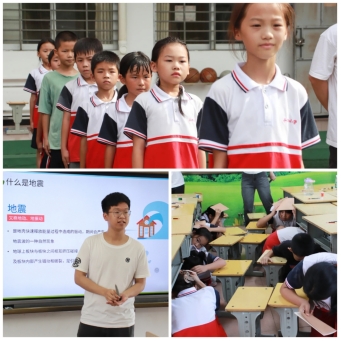第二课,内容为军训和地震逃生演练。陈书军老师带领实践队队员通过军训的形式帮助小学生树立了纪律意识,并通过地震逃生演练帮助同学们掌握基本的逃生技巧。