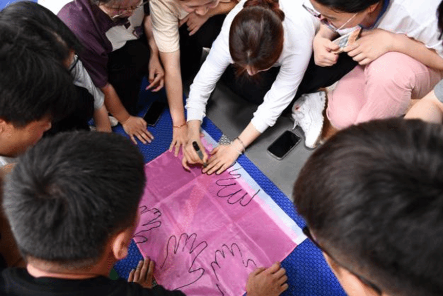 活动期间,全体学工成员随机组队分为6支队伍,先后进行破冰行动和素质拓展活动。在破冰行动中,队员在各队队长的带领下构思队名、口号、队歌以及团队特色标识,现场气氛热烈,热情高涨。在素质活动过程中,学工成员们团结协作,体现团队凝聚力和战斗力,充分展现了我校学工队伍卓越的精神风貌。