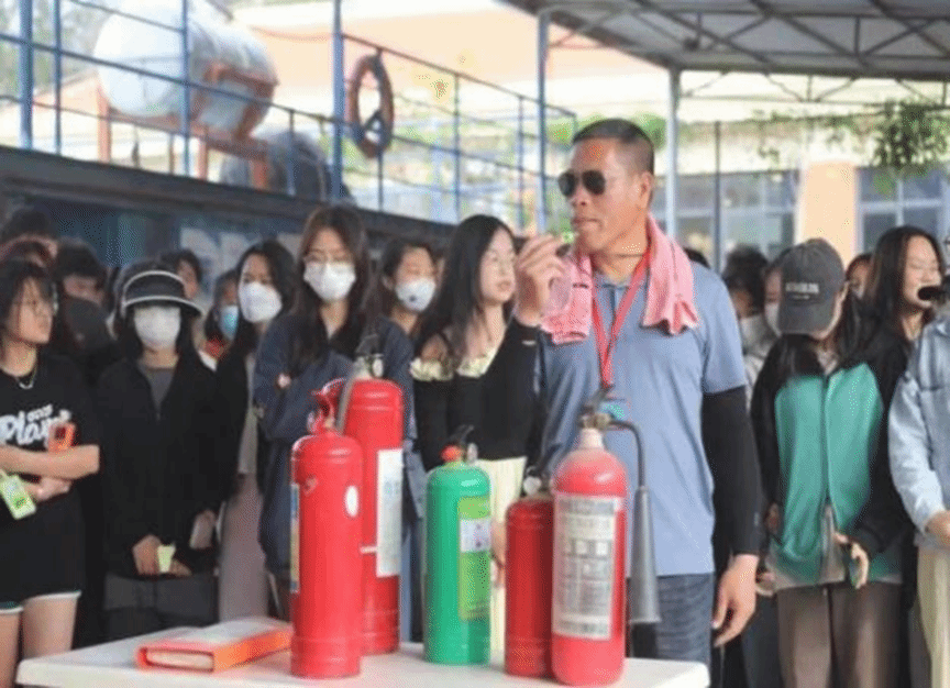 艺术体育学院组织社区网格化区域学生宿舍长在水上实训基地开展消防设施实际操作培训。