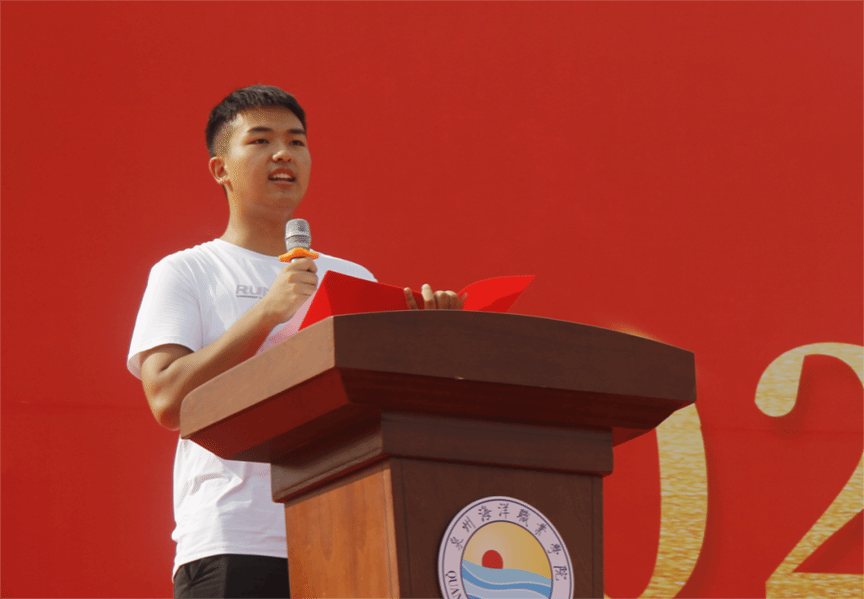 2023级航海交通学院航海技术专业王啟浩同学代表全体新生发言。