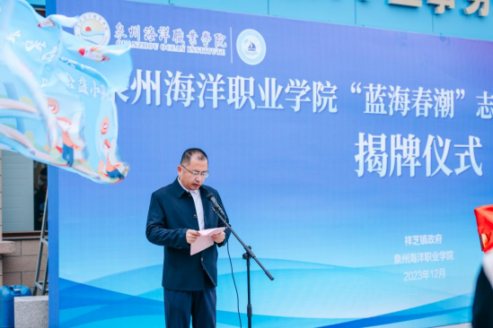 出席仪式的领导、嘉宾有石狮市委宣传部副部长、文明办主任蔡振宇,祥芝镇党委书记邱建明,祥芝镇党委副书记、镇长邱培钦,祥芝公安派出所长张宝利,泉州海洋职业学院党委副书记、副校长李明灿,泉州海洋职业学院学工部部长张君以及祥芝镇相关领导、镇公安派出所、镇宣传办、镇综治办、各村主干、村宣传委员以及泉州海洋职业学院师生代表。揭牌仪式由我校团委书记、学工部副部长屈先锋主持。