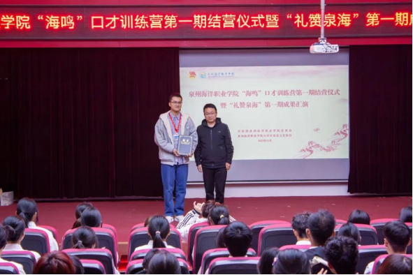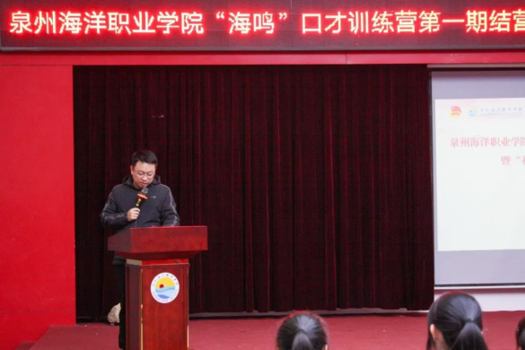 为继承和发扬中华民族优秀传统文化,锻炼学生语言表达能力,激发学生信心。经过长达一个多月的刻苦训练,1月10日,我校大学生语言文化协会在2204举办了“海鸣”口才训练营结营仪式,校团委书记、学工部副部长屈先锋,,学工部资助与捐赠中心副主任温宝林,校团委老师林欣,大学生语言文化协会指导老师林有霖,莅临本次活动。