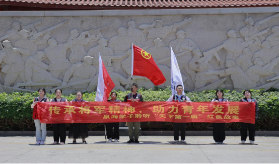 泉州海洋职业学院星火逐光服务队于2023年6月27日-7月9日前往福建省惠安县解放军烈士庙开展暑期社会实践活动,服务队通过开展调研活动聆听“天下第一庙”红色故事、了解27名战士的故事,采访曾恨奶奶,并通过举办红色宣讲、联学共学活动,以及共建“爱国主义教育基地”等,忆峥嵘岁月,坚定红色信仰、牢记革命史、弘扬和培育民族精神。