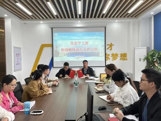 为全面贯彻习近平总书记关于教育的重要论述和全国教育大会精神,进一步规范学工系统教师履职履责行为,推进师德师风建设工作,近日,学工系统开展师德师风宣贯会,党委学生工作部全体人员、各二级学院党支部副书记参加会议,会议由党委学生工作部部长张君主持。