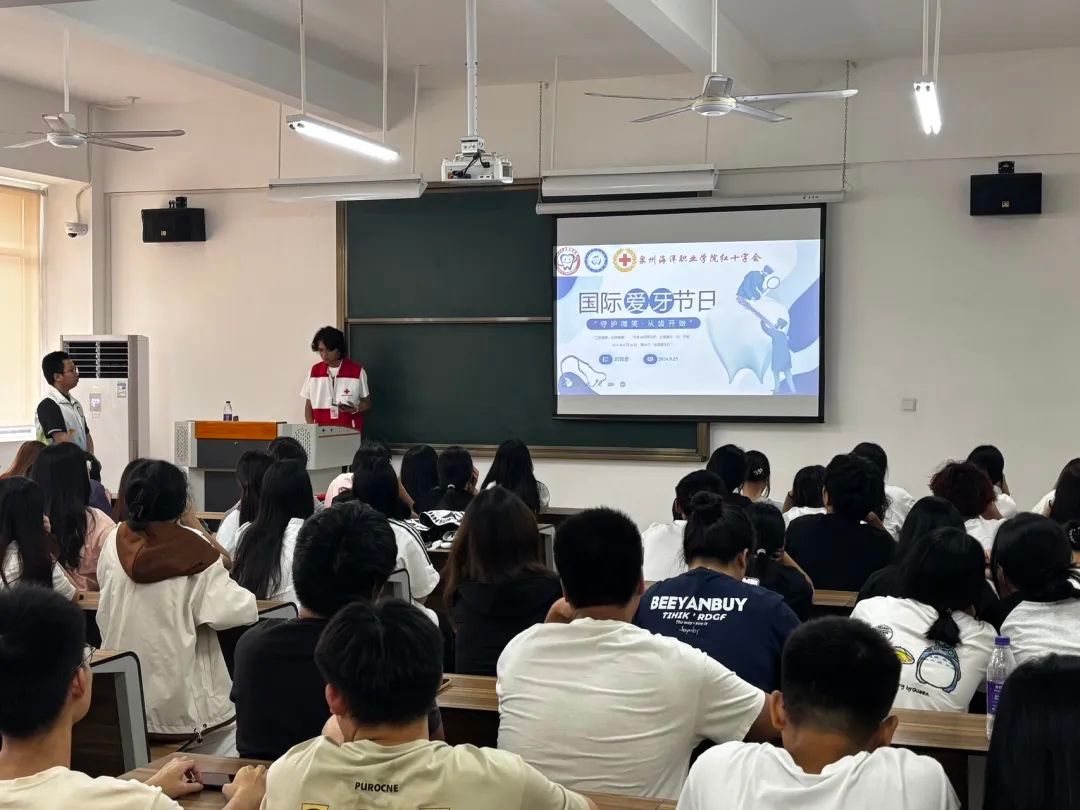 2024年9月20日是第36个“全国爱牙日”,为了增强同学们的口腔健康意识,促进口腔健康行为的形成,营造口腔健康的氛围。为此,泉州海洋职业学院红十字会携手信息工程学院于9月25日举办“守护微笑,从‘齿’开始”主题宣讲活动。本次宣讲活动旨在提高同学们对口腔健康的重视,传播正确的爱牙护牙知识。
