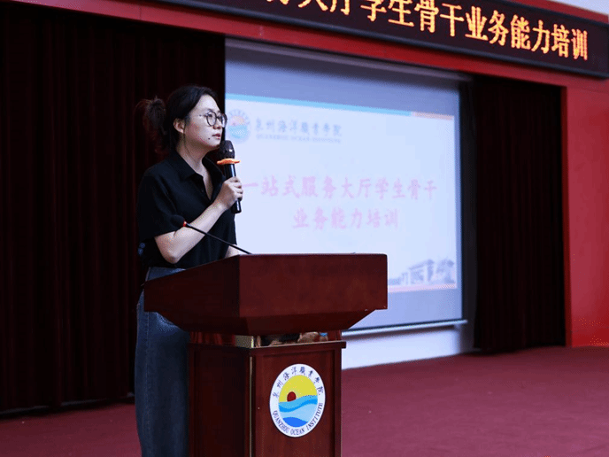 随后各板块的负责老师依次讲解了各窗口功能、岗位职责、服务内容及常见的业务流程。黄开坪老师深入细致地阐述了后勤服务的具体内容;黄安娜老师全面地介绍了学生日常管理的各项职责;肖伟强老师全面地讲解了团务基础以及丰富多彩的团学活动;柯伟霖老师详细地说明了公寓管理的内容;杨莹老师全面地介绍了心理服务的范畴与意义;温宝林老师详细介绍了学生资助服务的政策与流程;林淑婷老师清晰地讲解了综合事务的相关内容。