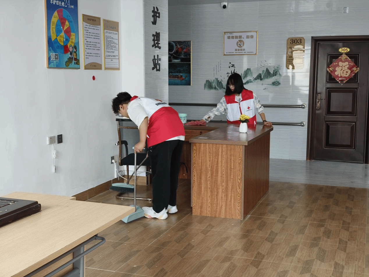 志愿者们一到养老院,便立刻投入到紧张的卫生打扫工作中。他们分工明确,有的负责扫地,有的负责擦护栏,还有的负责整理桌椅。经过一番努力,养老院的每一个角落都焕然一新,老人们的生活环境变得更加整洁舒适。
