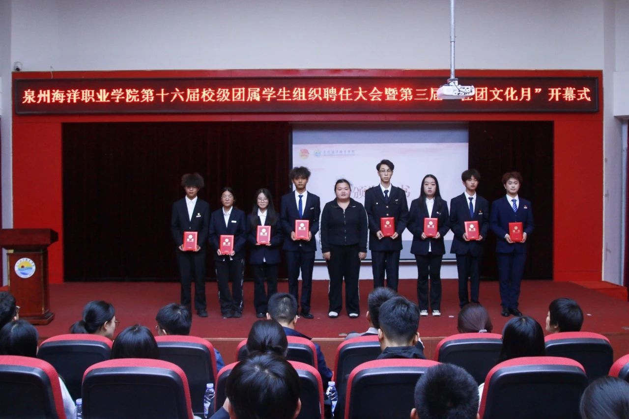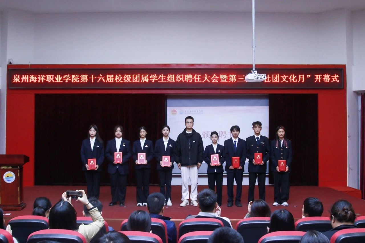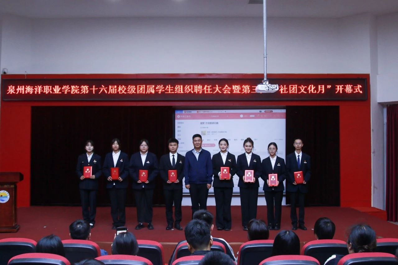 11月7日,我校在2204报告厅举行泉州海洋职业学院第十六届校级团属学生组织聘任大会暨第三届“社团文化月”开幕式。党委学工部部长张君,党委学工部全体老师,二级学院团委(团工委)书记,校级团学组织指导老师出席会议。