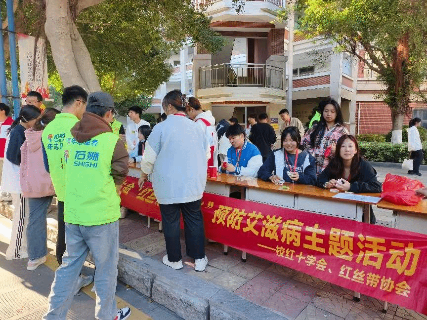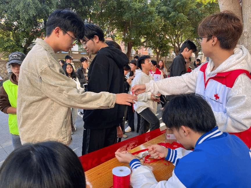 每年的12月1日为世界艾滋病日,为提高同学们对艾滋病的认识,增强自我保护意识,校红十字会携手红丝带协会举办了“热血防艾,点亮‘红色带’之光”为主题的预防艾滋病主题活动。此次活动旨在通过形式多样的宣传和互动,让同学们深入了解艾滋病知识,消除对艾滋病的恐惧和歧视,倡导健康的生活方式。
