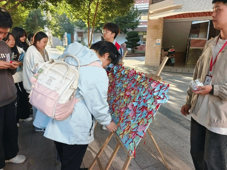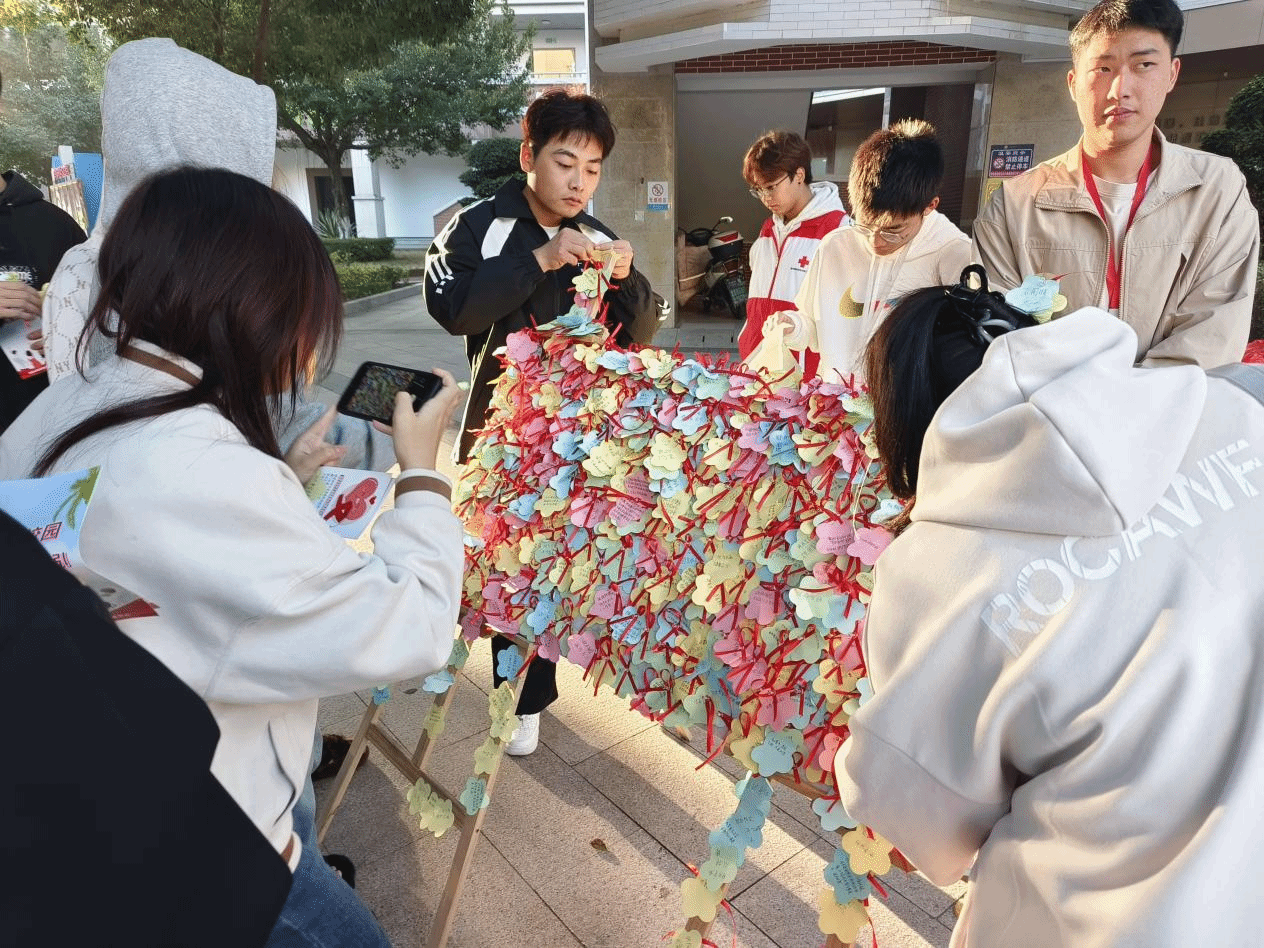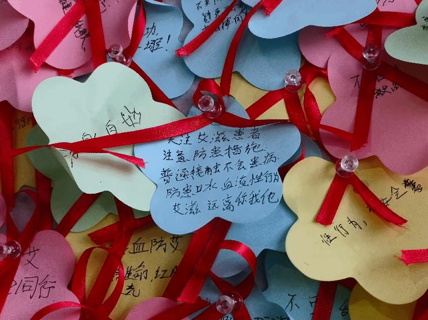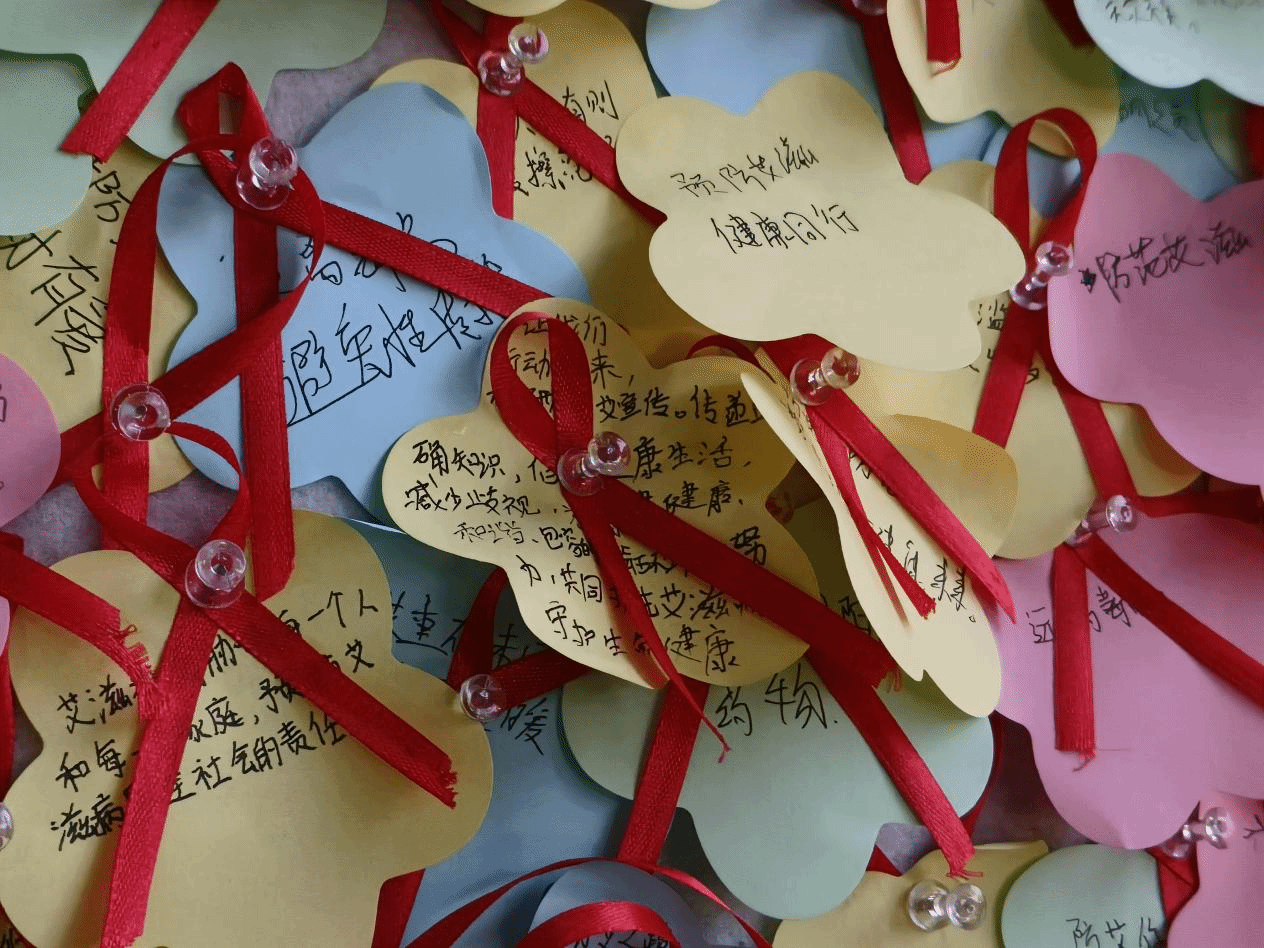 同学们的积极参与使得活动现场弥漫着浓厚的公益氛围,每一张贴在留言板上的小红花都承载着大家对防艾工作的关注与承诺。这场活动不仅提升了同学们的健康意识,也促进了校园内的正能量传播。这一刻,红丝带不仅仅是一个象征,它成为了连接每个人心灵的纽带,让关爱与理解在校园里流淌。