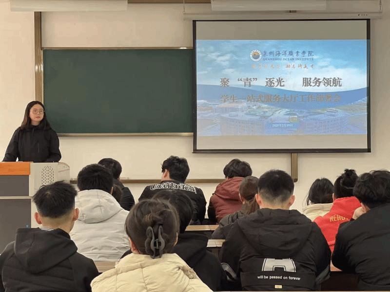 2月19日下午,“聚‘青’逐光,服务领航 —— 学生一站式服务大厅工作部署会在3号教学楼3205如期举行。党委学工部综合办公室副主任、青年驿站指导老师林淑婷与青年驿站全体成员以及青年志愿者协会部分成员齐聚一堂,共同回顾过去一年的工作成果,规划新学期的发展蓝图。