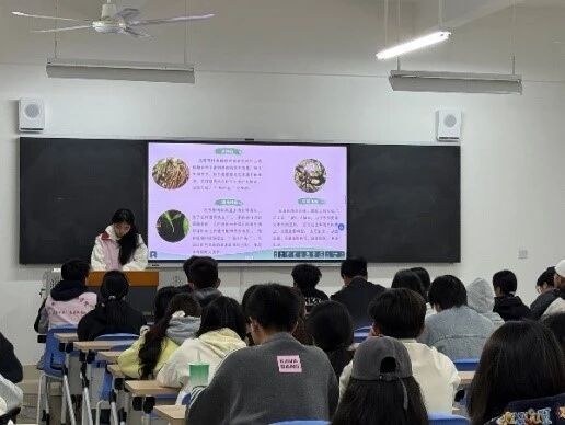 随后,蓝海春潮服务队成员叶思颖以《走进热带雨林,守护国家公园》为主题分享。她依托高清影像,带领师生沉浸式领略雨林风貌,解读其作为“天然空调”“绿色水库”“基因宝库”的核心生态价值,强调其对维系生物多样性的重要意义。她倡议师生践行减塑、少用一次性用品、双面用纸等绿色习惯,以点滴行动守护生态家园。