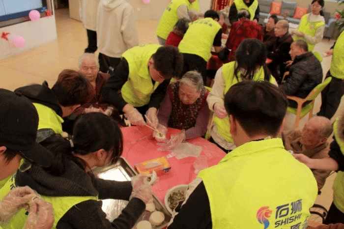 暖阳洒进养老院的活动室,志愿者们怀着满心热忱到来。洗手、拌馅、擀皮、包饺子,大家分工协作、有条不紊,掌心翻飞间一张张圆润的饺子皮便成型,包馅,捏、挤、按的动作一气呵成,老人们兴致勃勃加入其中,活动室里欢声笑语不断,手法稚嫩的新手跟着老手认真学习,一盘盘饱含温情的饺子很快就摆满了桌面。