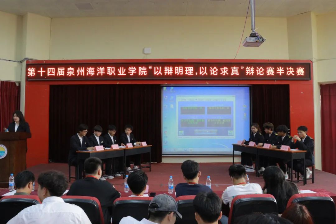 泉州海洋职业学院“以辩明理,以论求真”辩论赛半决赛近期在2204报告厅正式拉开序幕。出席本次辩论赛的评委有校团委林欣老师、经济管理学院团委书记肖伟强老师、艺术体育学院辅导员陈俊仁老师、航海交通学院辅导员洪达铭老师、信息工程学院辅导员颜洁雅老师、海洋工程学院辅导员陈书军老师。