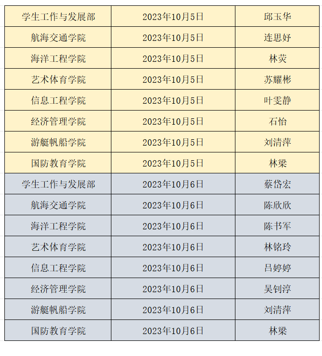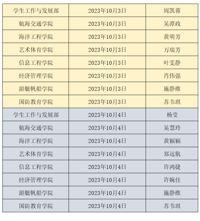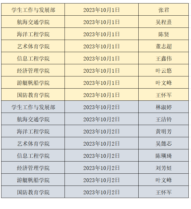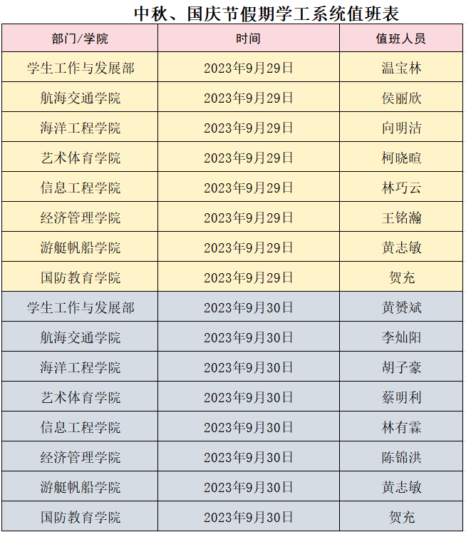 中秋节、国庆节期间我校学工系统值班安排如下:
