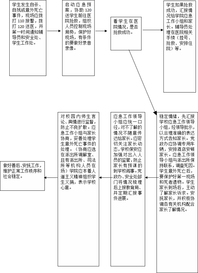 一旦发现或知晓某生有自杀意念,即该生近期有实施自杀的想法和念头,学院应立即采取以下措施: