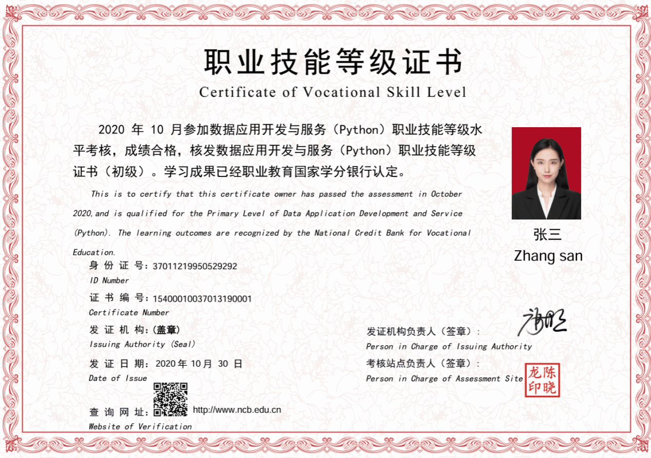 数据应用开发与服务(Python)职业技能等级证书由北京中软国际信息技术有限公司颁发,是教育部“1+X”证书体系一员,分初、中、高级,受行业认可,可证明持证人对应级别的Python开发与数据处理能力 。