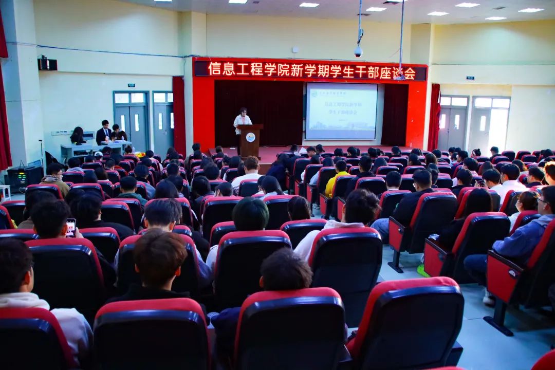 为进一步做好学生干部培养工作,强化思想引领,充分发挥学生干部的带头作用,培养学生干部服务意识,落实“三位一体三管理”管理育人体系,信息工程学院于2023年2月23日下午,在2204报告厅召开新学期学生干部座谈会。信息工程学院党支部副书记温馨、团委书记吴云东、青年教师代表以及全体辅导员老师出席本次学生干部座谈会。会议由学生干部代表许诗淇主持。