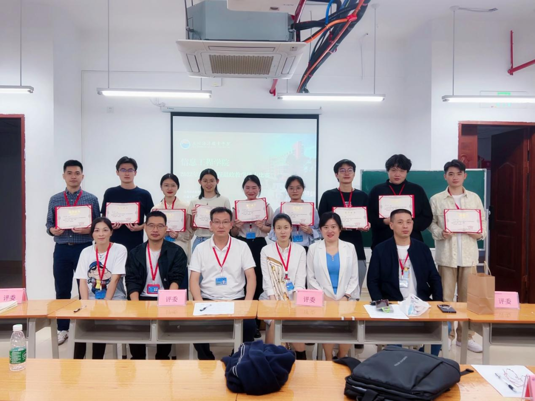 为进一步推进“课程思政”教学改革,充分发挥课堂教学育人主渠道、主阵地的作用,全面推进学校课程思政建设,提高人才培养质量,我校信息工程学院于11月17日举办了2022年课程思政教学能力比赛。比赛由副校长钱学东、教务处副处长郑玉花、信息工程学院院长贾超、副院长王雪茹、专业负责人林军、王薇等担任评委,信息工程学院全体专职教师参与比赛。经过激烈的角逐,丁晨泰老师荣获一等奖,郭长磊老师、蔡庆恩老师、陈恬恬老师获得二等奖,张樱瑛老师、林泳怡老师、朱怡晴老师、杨敬雷老师、范良策老师获得三等奖。
