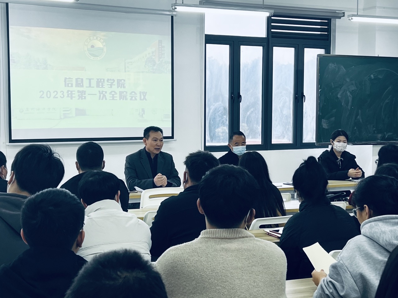 2月10日上午,信息工程学院在图书馆五楼召开2023年第一次全院教职工会议。钱学东副校长、信息工程学院全体教职工参加会议。信息工程学院院长贾超主持会议。