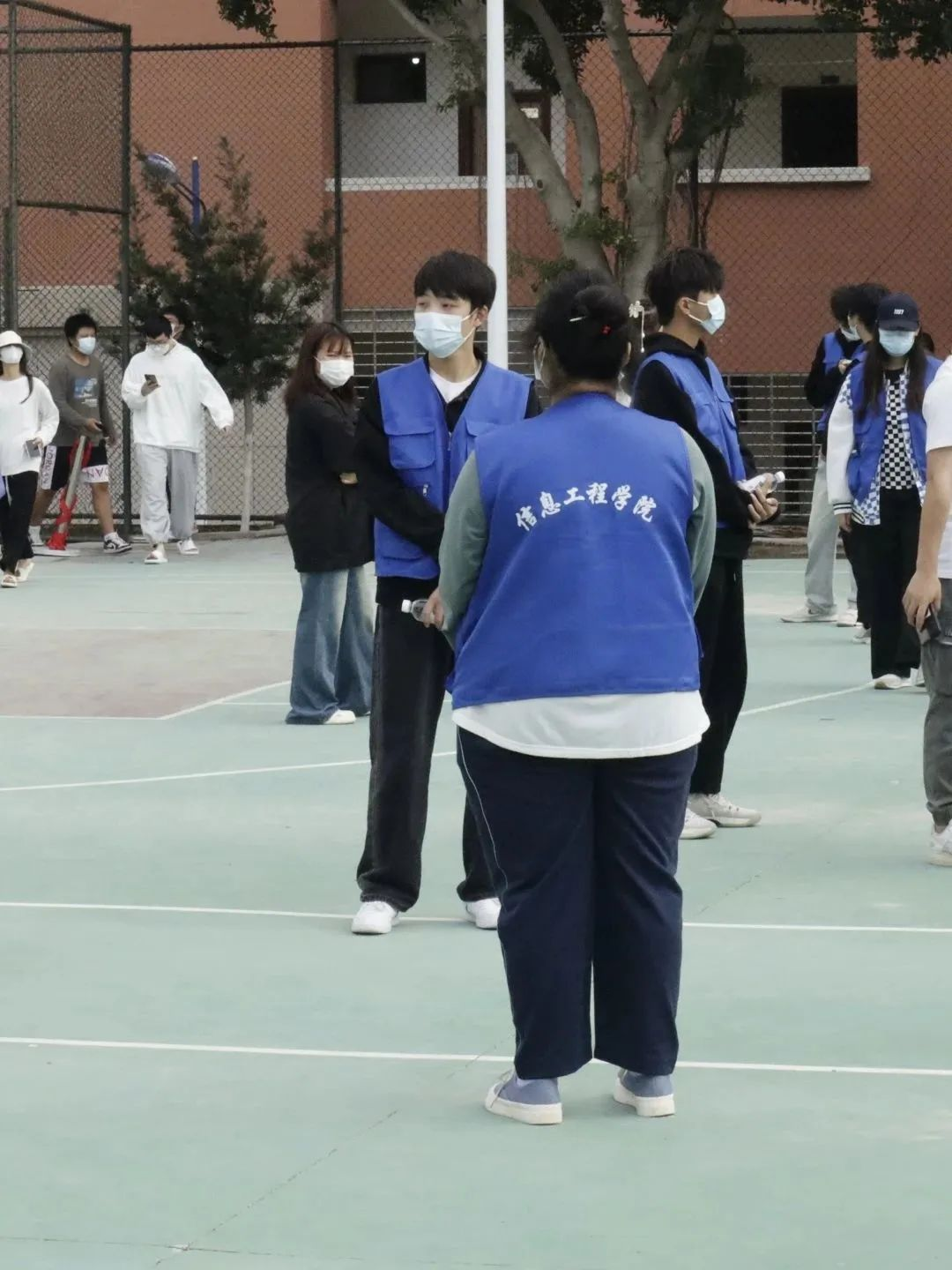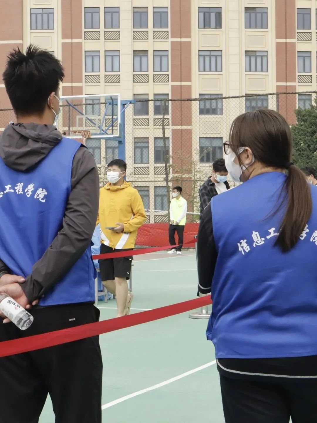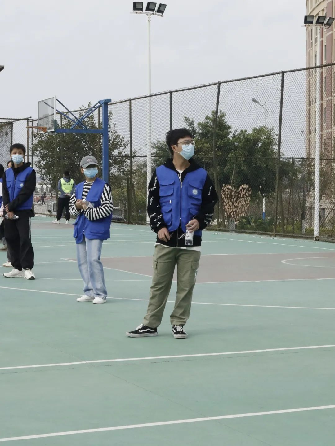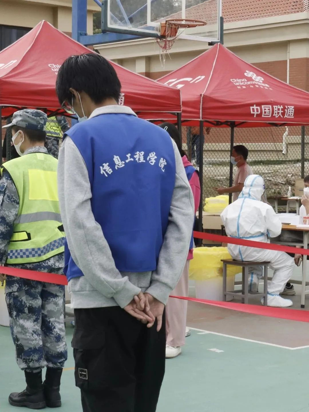 一个个坚挺的蓝色身影,屹立于篮球场之上,虽他们脸上带着口罩,看不清面貌,但也可以感受到他们身上的那份无私奉献的精神和勇于担当的责任感。在信工志愿者同学子们积极配合下,我校全员核酸顺利完成。