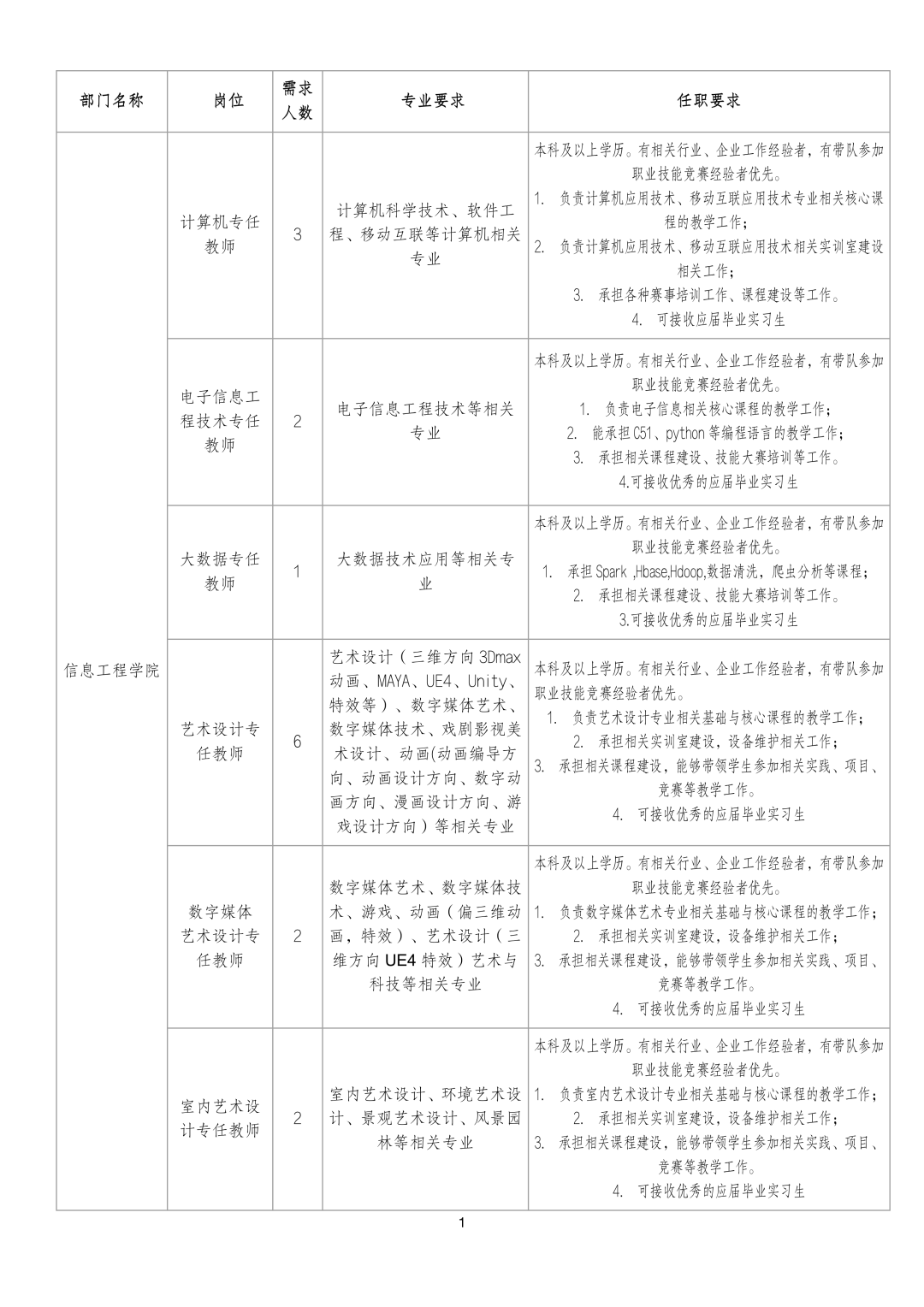 3、具有相关的专业背景或从业经验,良好的学术道德和团队协作精神,对本专业建设和发展具有创新性构想。