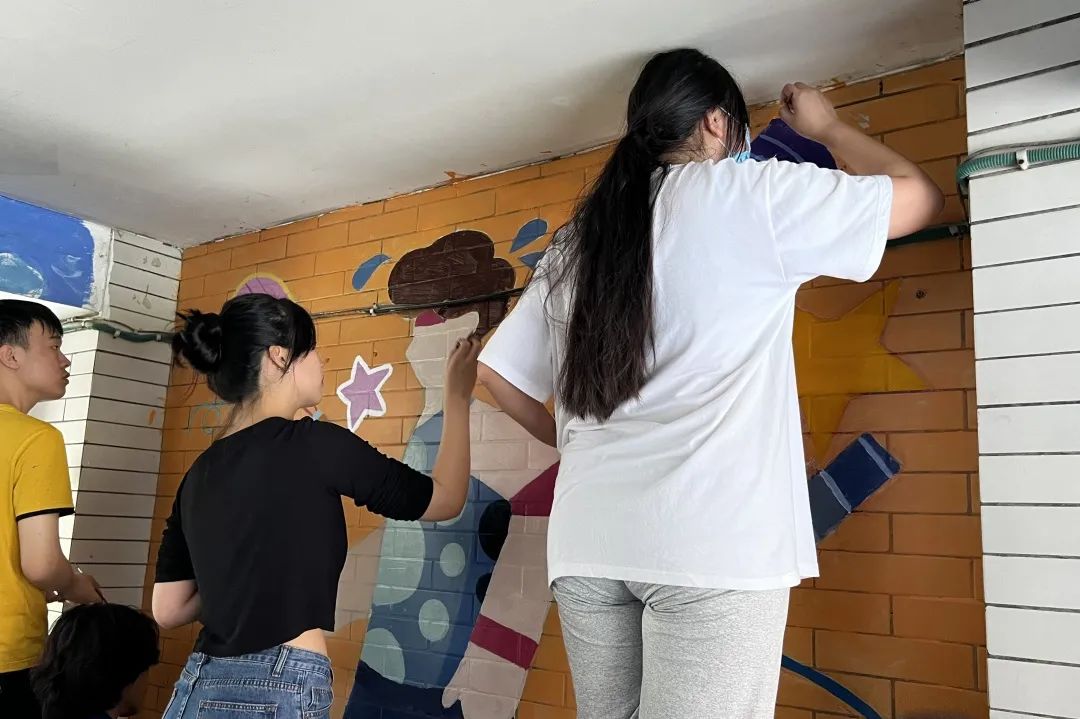 艺术设计五年制20级的学子们通过一双双手,在三栋宿舍楼下开展主题墙体壁画绘制,为校园增添了一道靓丽风景线,引来众多老师、同学驻足点赞。