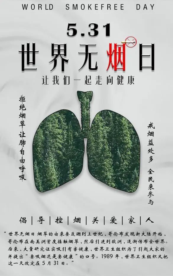 2022年5月31日下午,由学院团委在校道旁开展禁烟海报作品展览,积极响应世界无烟日。向吸烟的同学发出了摒弃烟草的号召,让更多的学生加入到无烟队伍里来,为构建无烟环境尽一分力量。