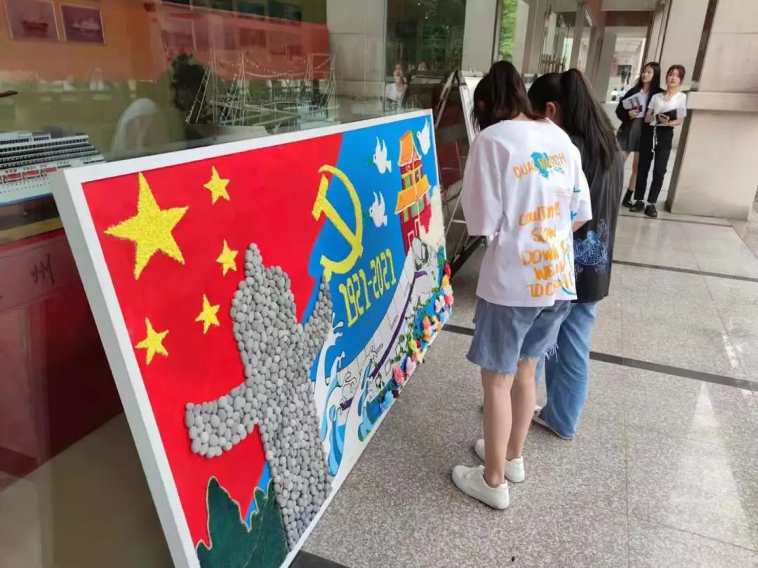 为了庆祝中国共产党建党100周年,于2021年6月25日起,历时两天在校道国旗台,泉州海洋职业学院休闲文旅学院与家事护理学院在校党委的领导下共同联办建党100周年艺术作品展