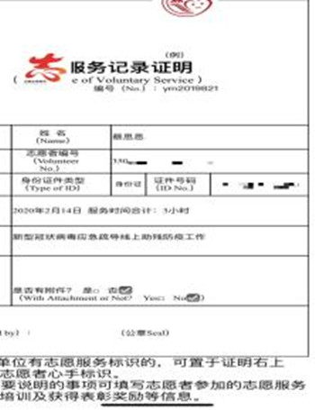 工作评价:从志愿者的服务工作中,通过谦虚,我学会了许多人生的经验。通过活动,我得到很多的快乐与心灵上的满足,这一切都是我宝贵的财富,是书本学习不到的知识。在许多的志愿服务的活动中,我体会到工作的成效取决于个人的积极性。积极地投入、热情地参与、耐心地引导、不厌其烦地解释说明,即使棘手的问题都可以迎刃而解。我们互学习,互努力,共付出,共奉献,原本没有的经验,也装的满满的。所以我们志愿者既是奉献者,也是受益者。工作锻炼我的思维,更磨练我的意志。使我更有能力,真心去实人生的价值,从而回报于社会。