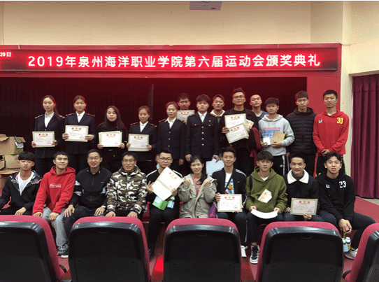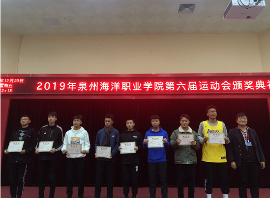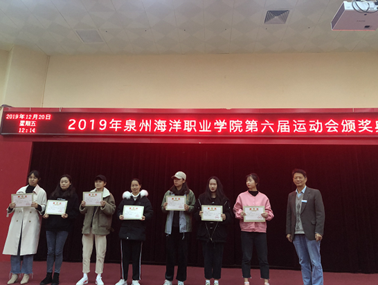 泉州海洋职业学院第六届田径运动会已经圆满落下帷幕,为了表彰运动健儿在运动会中的卓越表现和突出贡献,泉州海洋职业学院体育运动委员会于12月20日在2204大礼堂举行了隆重的颁奖仪式。