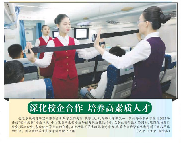 10月23日,石狮日报头版对我校空中乘务专业进行了题为《深化校企合作 培养高素质人才》的深度报道。